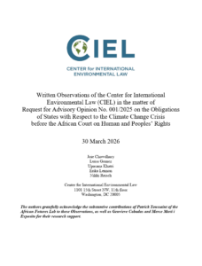 CIEL submitted written observations, on invitation, to the African Court on Human and Peoples’ Rights in its advisory opinion proceedings on States ‘ obligations regarding the climate crisis. These proceedings were initiated by a request from the Pan African Lawyers Union (PALU) together with a coalition of African NGOs. Drawing on international human rights and environmental law – icluding recent advisory opinions on climate change issued by the International Tribunal for the Law of the Sea (ITLOS), the Inter-American Court of Human Rights (IACtHR), and the International Court of Justice (ICJ) – this submission highlights an emerging legal consensus: climate change is a human rights crisis driven by fossil fuels, and States have clear legal obligations to address it. In light of Africa’s minimal contribution to global emissions and its disproportionate exposure to climate impacts, rooted in histories of colonial dispossession and structural inequality, the brief argues for the full and equitable phaseout of fossil fuels. It stresses the need for best available science-based measures that effectively prevent harm, and rejects approaches that delay or shift responsibility. The submission also focuses on the duty to ensure full reparation, including the obligations of African States to both guarantee access to justice and effective remedy domestically for climate harm, and to pursue reparations from responsible States and corporations internationally. |